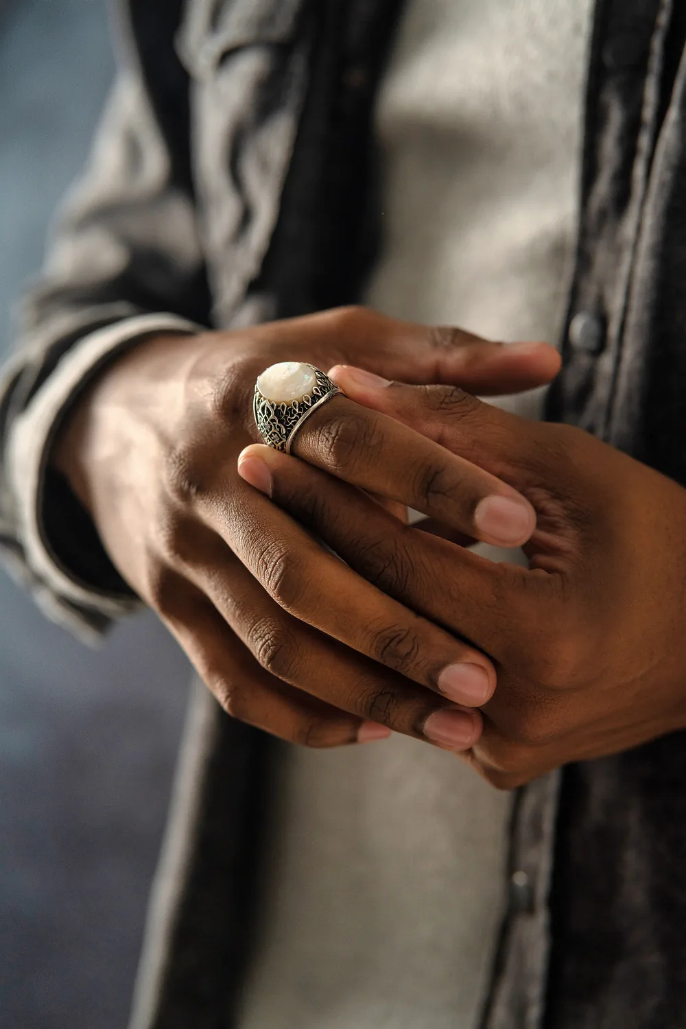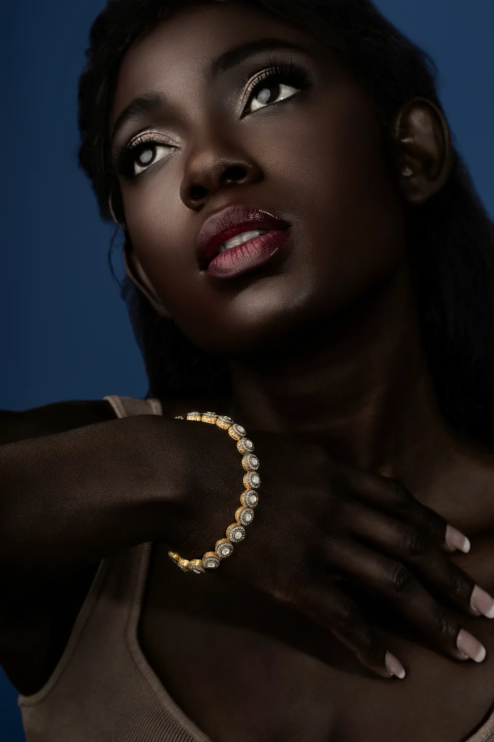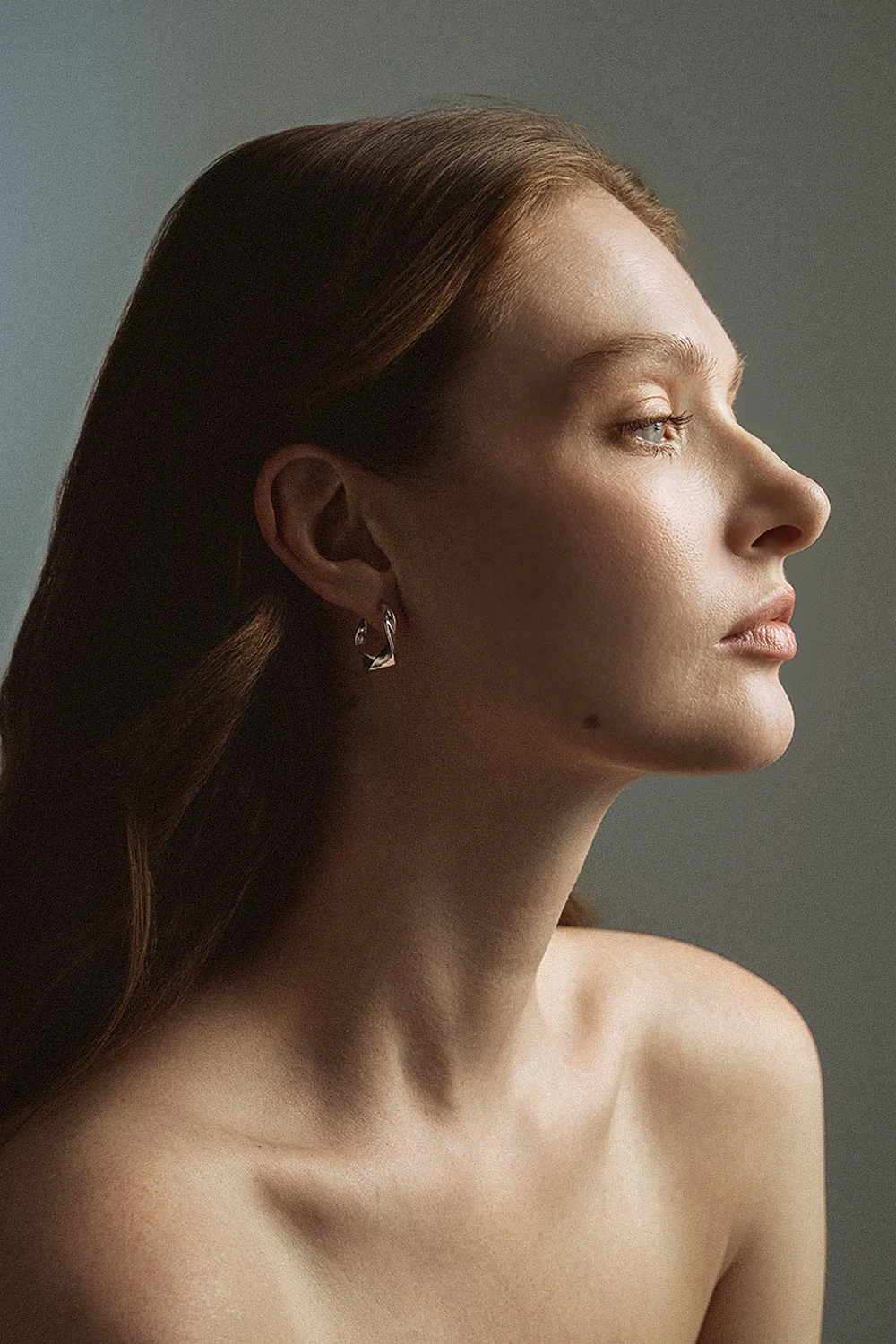 Clean isolated product frames demand surgical control. Jewellery-on-skin imagery demands something else: the relationship between metal, stone, body, gesture and shadow. The fine-art practice with the human form feeds directly into this — giving the on-skin images more tension and physical intelligence.