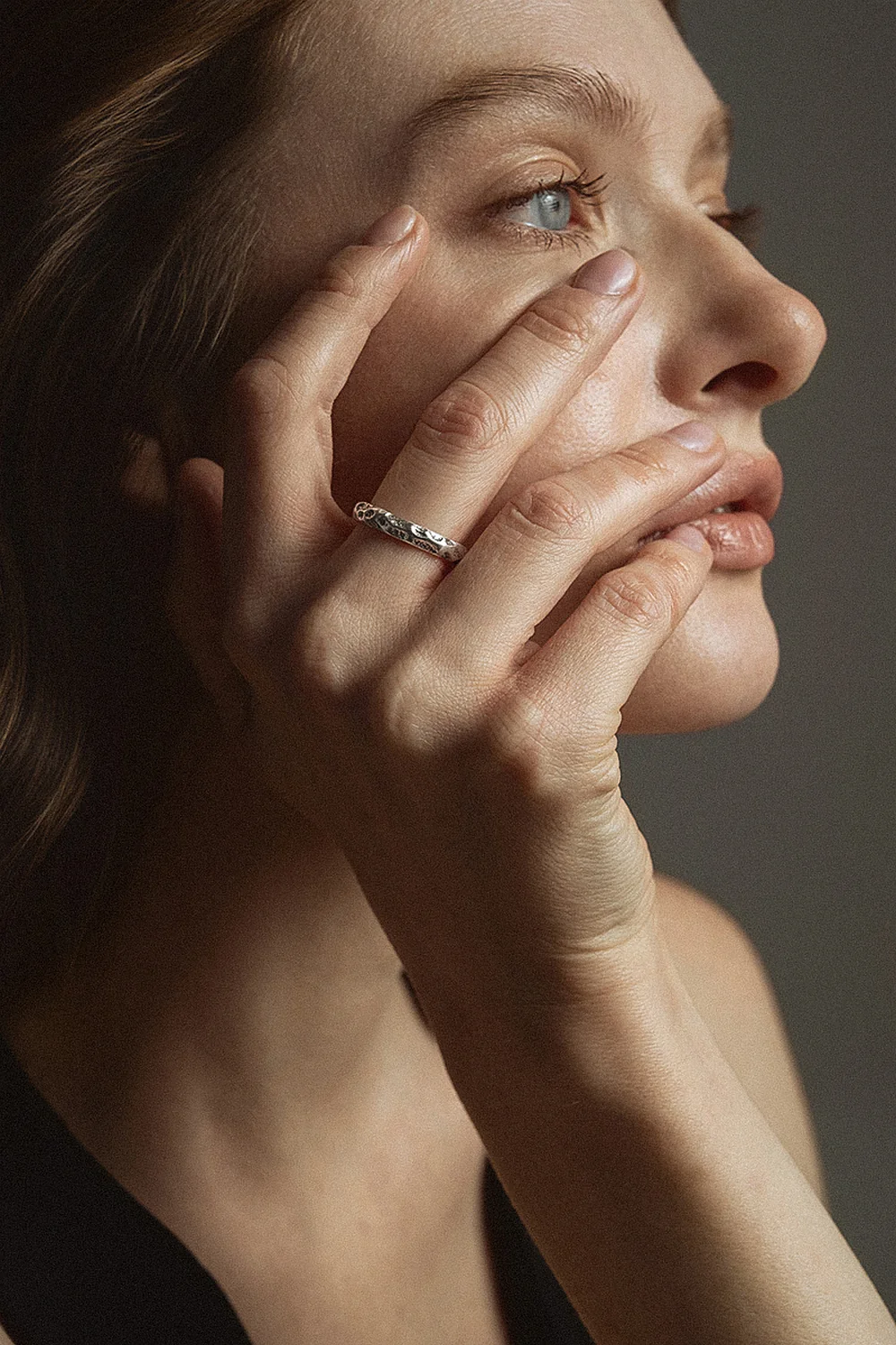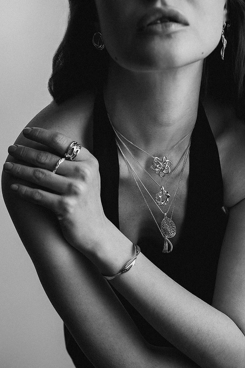 Jewellery and object photography built around reflection control, material precision and visual restraint — from product-only stills and jewellery-on-skin imagery to campaign key visuals and authored object studies.